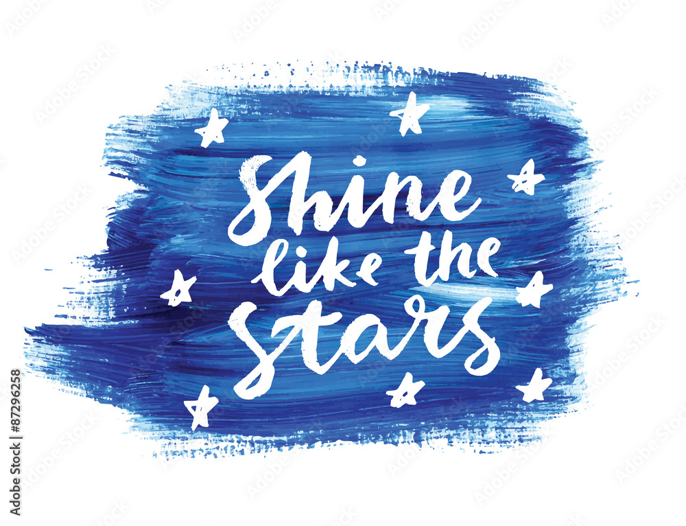 Shine like the stars. Hand lettering quote on a creative vector