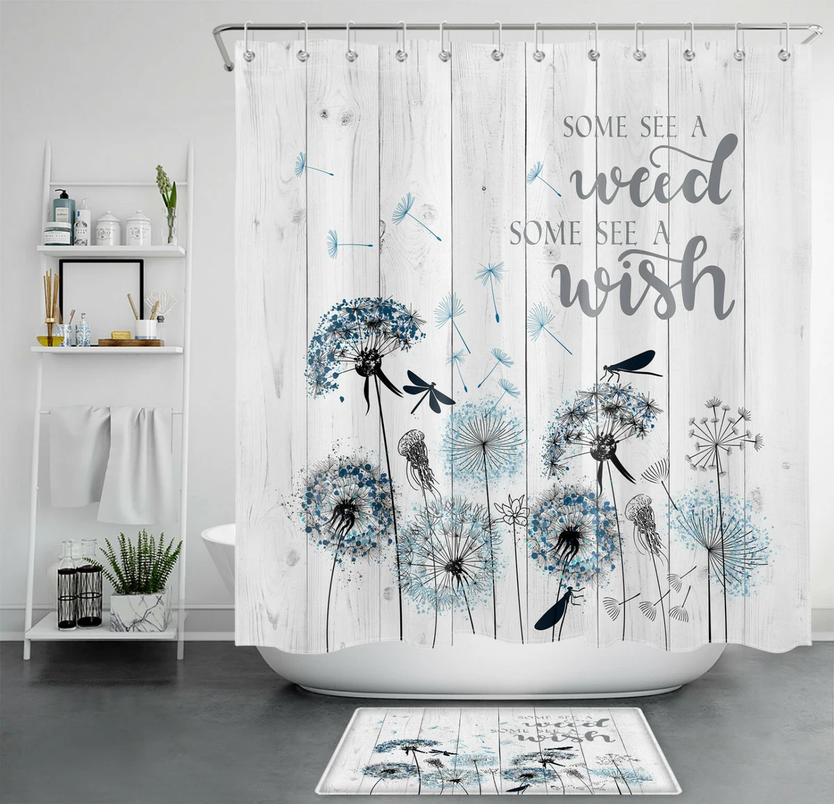 Rustic Planks Dandelion Inspirational Words Shower Curtain Set