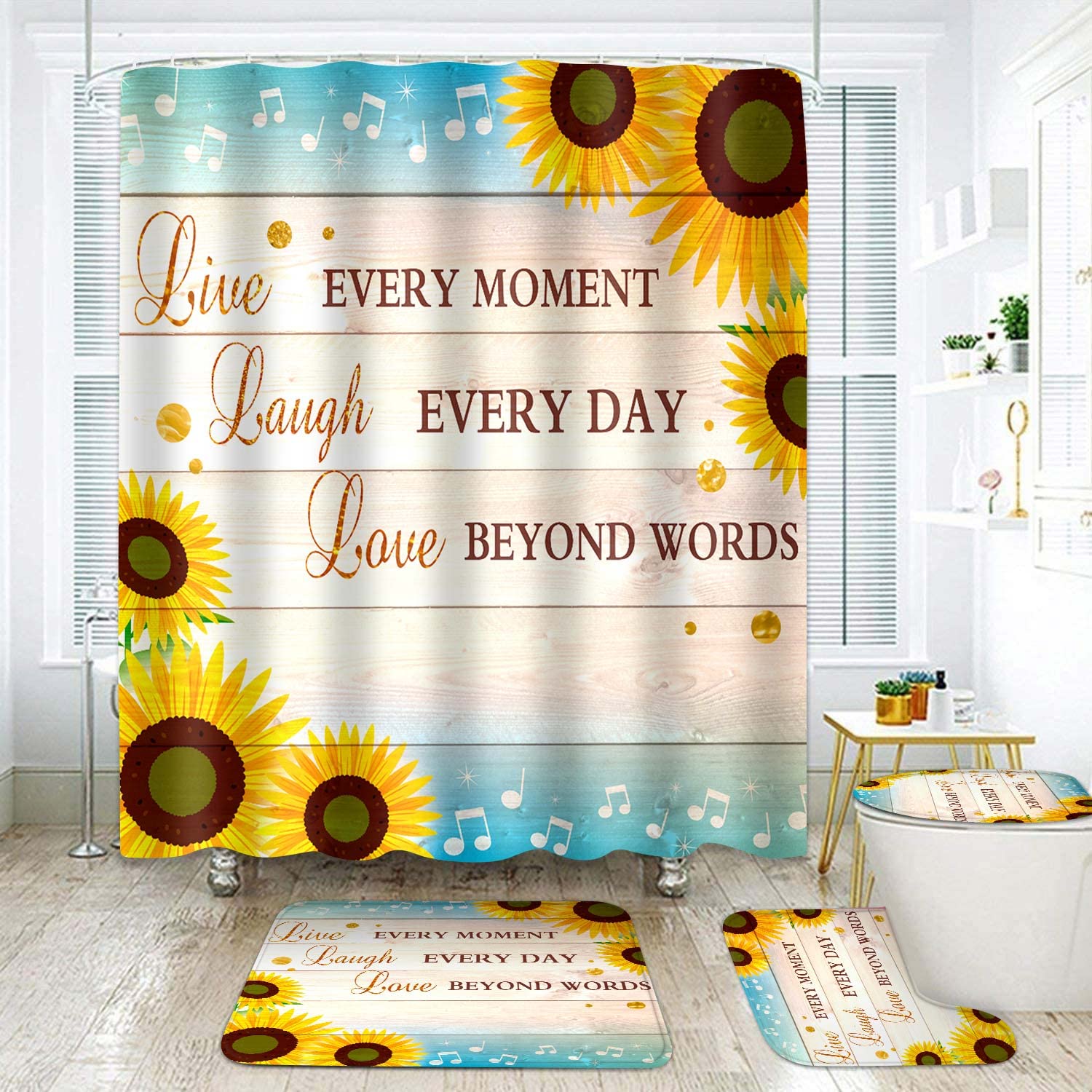 Amazon.com: EARVO 4PCS/Set Sunflower Music Shower Curtain