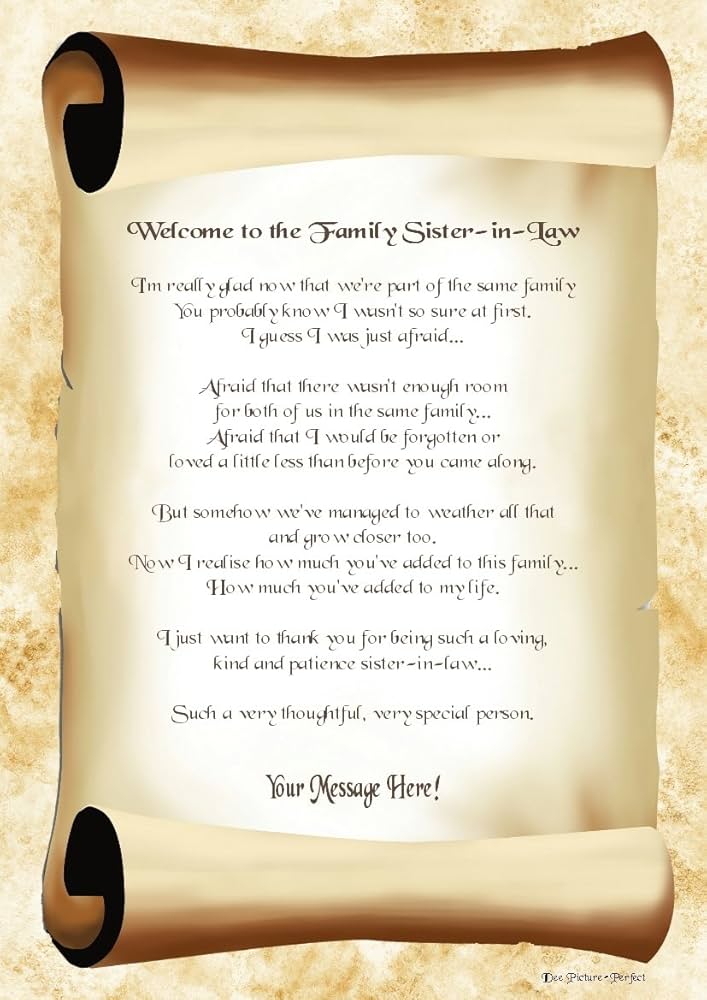 Welcome Message To Sister In Law – Dear Newsweek, I am 79 years old. My sister-in-law is 70. My brother and the woman he was introduced to lived miles apart in two different cities. They were introduced by some fellows who knew . Her husband suggested confronting his sister during wasn’t exactly the ‘welcome to the family’ I’d hoped for. Nevertheless, I did respect her request not to message her again.” .